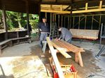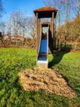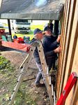 Der aktuelle Stand ist, dass jetzt das Dach soweit fertig ist, dass es nicht mehr durchregnen kann und nur noch kleinere Arbeiten hierfür nötig sind. Weiter wurden die Seitenfronten bis auf einen kleineren Teil geschlossen. Die äußere Beplankung mit Lärchenbrettern ist fast fertig. Der Einsatz am 4. Oktober hat wieder einen richtigen Ruck nach vorn gegeben. Nun steht noch der Innenausbau mit Einsetzen einer Zwischentür und einem Rollladen für die Durchreiche sowie die innere Beplankung an.