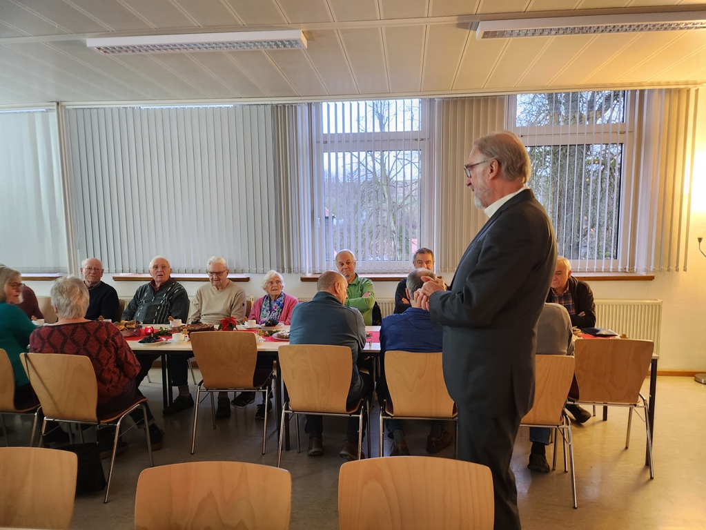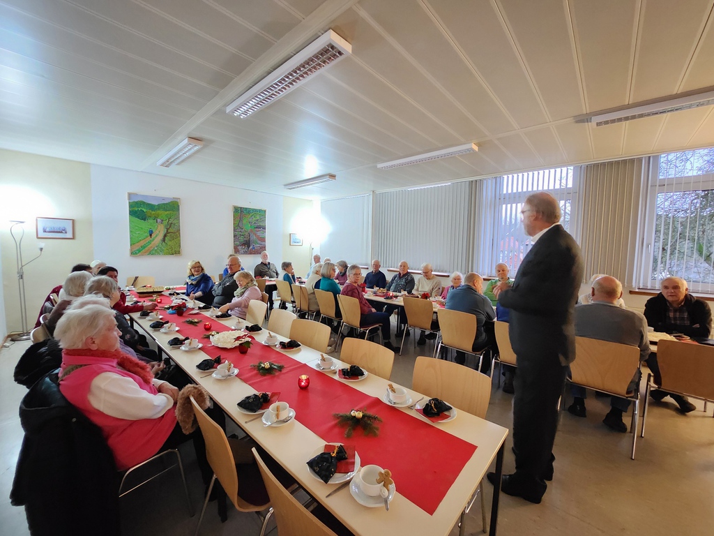 Am Nachmittag war der Weihnachtmarkt wieder kombiniert mit der Seniorenadventsfeier , zu der selbstverständlich auch Kaffee und Kuchen gehörten. Außer den eingeldenen Seniorinnen und Senioren machten auch andere Gäste davon Gebrauch und wurden um eine Spende gebeten.